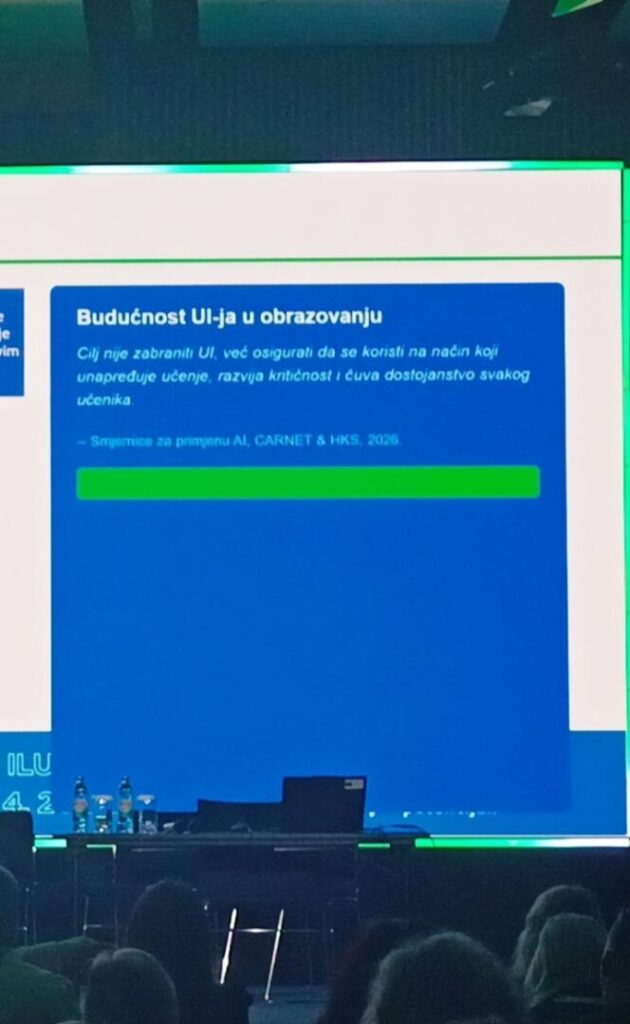 Na ovogodišnjoj konferenciji CUC 2026 poseban naglasak stavljen je na promišljeno i odgovorno uvođenje umjetne inteligencije (UI) u odgojno-obrazovni proces. Kroz niz predavanja i rasprava predstavljene su smjernice koje školama mogu poslužiti kao temelj za kvalitetnu i sigurnu integraciju UI alata u nastavu.