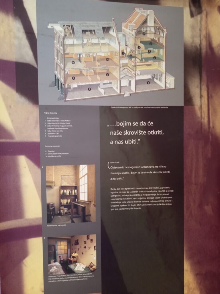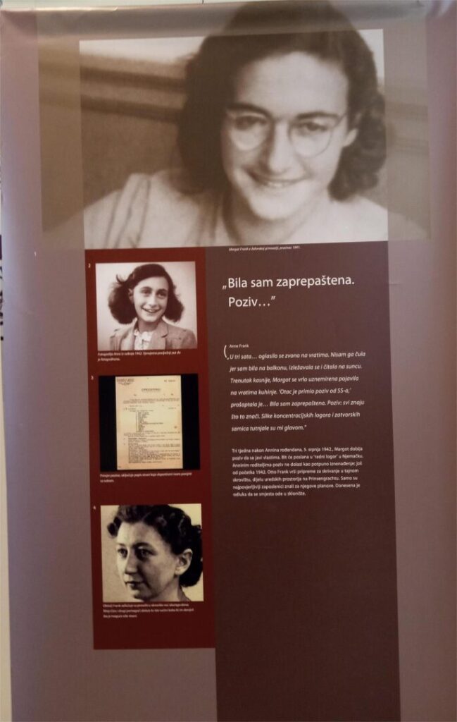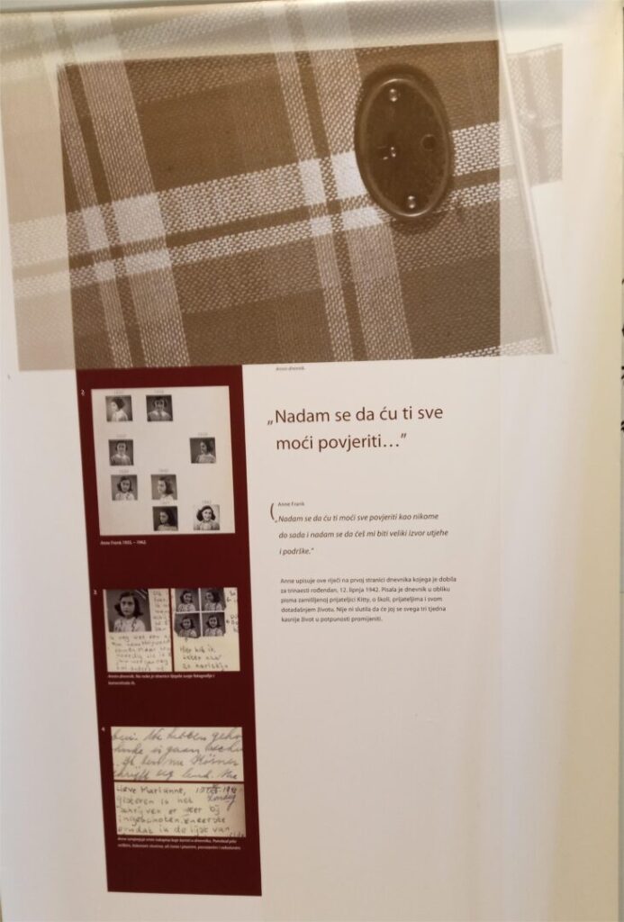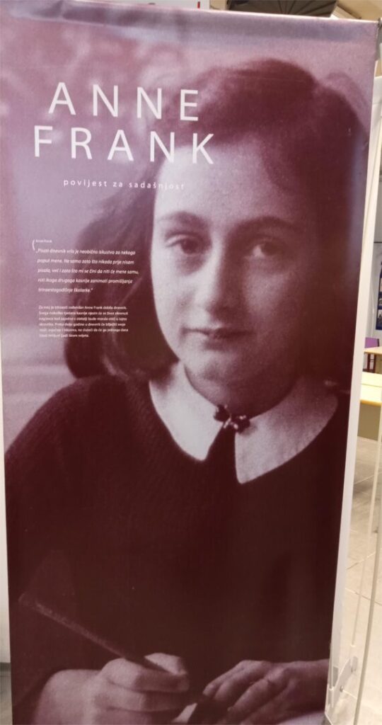 Učenici 1.a 1.b i 1.c razreda u pratnji profesorica Suzane Ković, Vanje Perković, Duške Grčić i školske knjižničarke Margarete Glavurtić u utorak 17. ožujka posjetili su izložbu Anne Frank u Prirodoslovnoj školi Split. Učenicima i nastavnicima su se pridružili naši gosti iz Celja. Ova izložba nas je duboko dirnula vrativši nas u prošlost i trenutke stradavanja djece u vihoru rata.