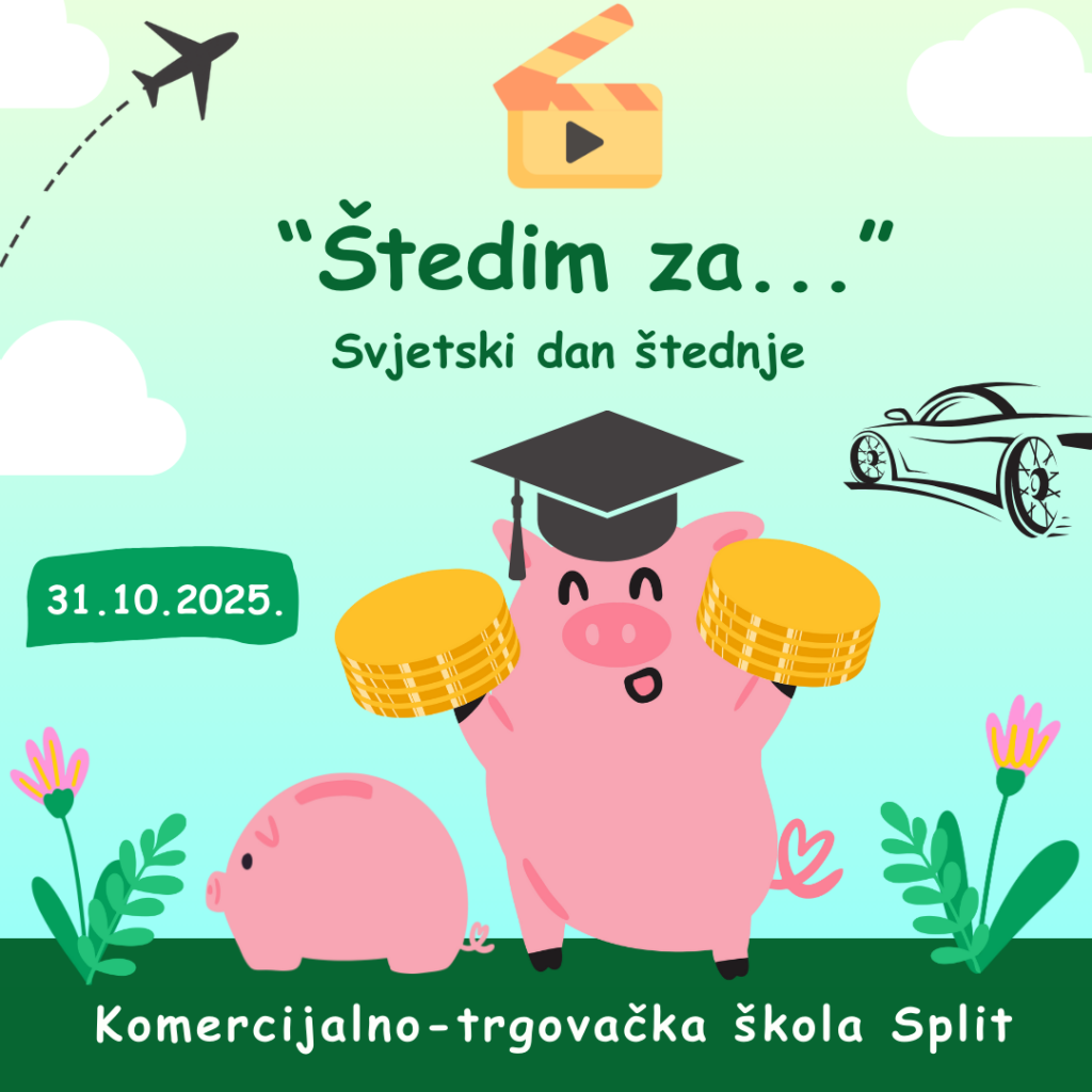 U povodu Svjetskog dana štednje, 31. listopada 2025. godine, učenici trećih i četvrtih razreda naše škole sudjelovali su u kreativnoj i edukativnoj aktivnosti pod vodstvom nastavnice Marije Istenić. Ove godine naglasak je bio na razvijanju financijske i medijske pismenosti kroz izradu kratkih videouradaka na temu „Štedim za…“.